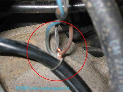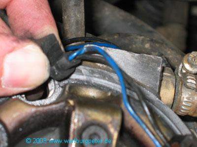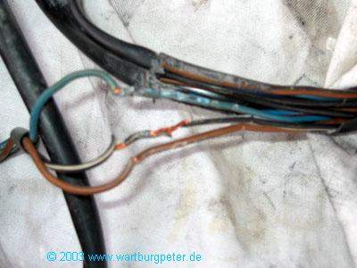 Schleichende Fehlerquelle: Die Zuleitung für die Einspritzdüse war eingequetscht, auch hier drohte Kurzschluß!